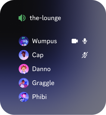 Discord servers help organize conversation into topic-based channels. Discuss that newest game release, share what you're up to, or talk about whatever — without clogging up a group chat.